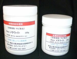 ステンレスの溶接スケール除去。アルミ・銅・真鍮のサビ、変色、クロムメッキ面のサビ除去。 |